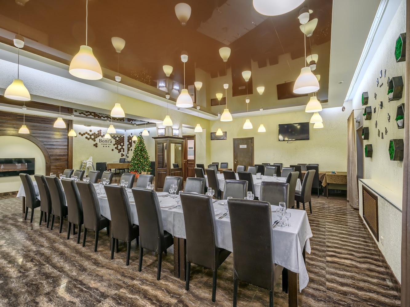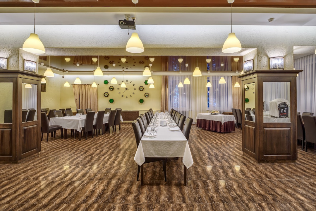 В ресторане на 1 этаже основного корпуса загородного отеля «Волга» предлагается банкетное меню с выбором блюд европейской и русской кухни. Ваш индивидуальный менеджер поможет в выборе блюд в соответствие с Вашими требованиями и пожеланиями.