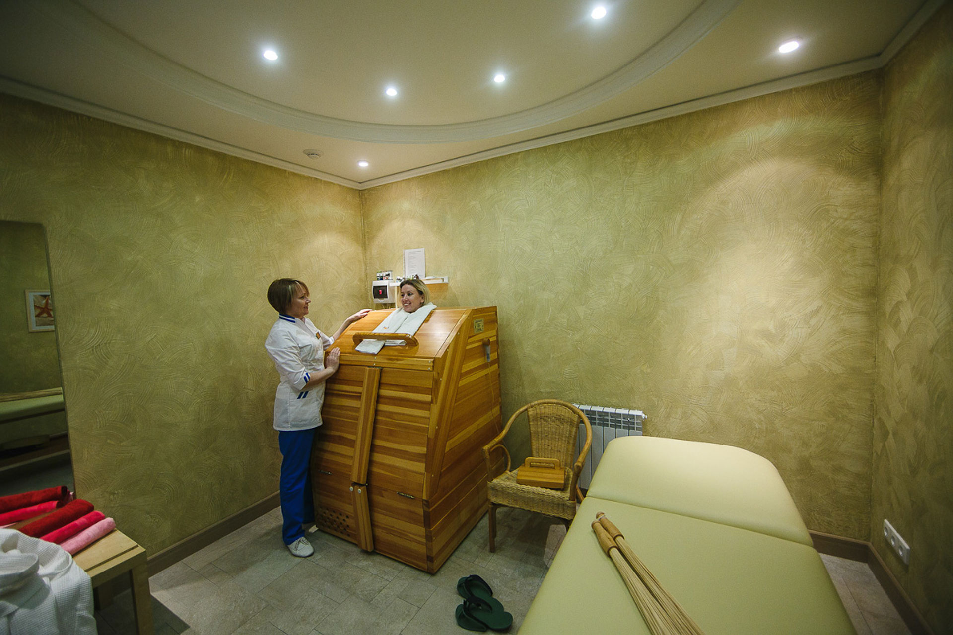 Во время лечебной процедуры пациент располагается в кедровой бочке. При этом его тело находится внутри бочки и только голова остается снаружи. Благодаря воздействию пара с эфирными маслами происходит разогрев тела, сопровождающийся повышенным потоотделением, при котором через кожу выходят тяжелые металлы и шлаки.